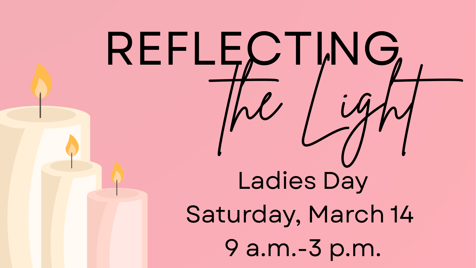 Ladies Day, “Reflecting the Light”, with guest speaker, Mrs. Amy Levesque. The day begins at 9 a.m. and ends at 3 p.m. Sign up on the bulletin board in the foyer if you plan on attending. The cost is $15 per lady and includes a luncheon.